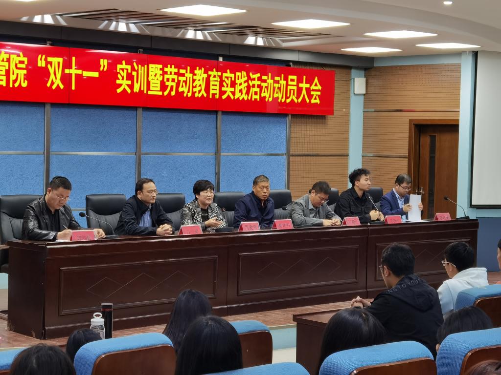 2020年10月24日下午,商务与管理学院2020年“双十一”客服生产实训暨劳动教育实践活动动员会,在3号实训楼水利报告厅举行,开启了一年一度的电子商务“网购狂欢节”产教融合实践。商务与管理学院樊建科书记、周爱荣院长、邹新忠副书记、吕梁副院长,杭州春客电子商务有限公司客服总监陈晓烈先生,以及电子商务专业群全体师生参加了此次动员大会。