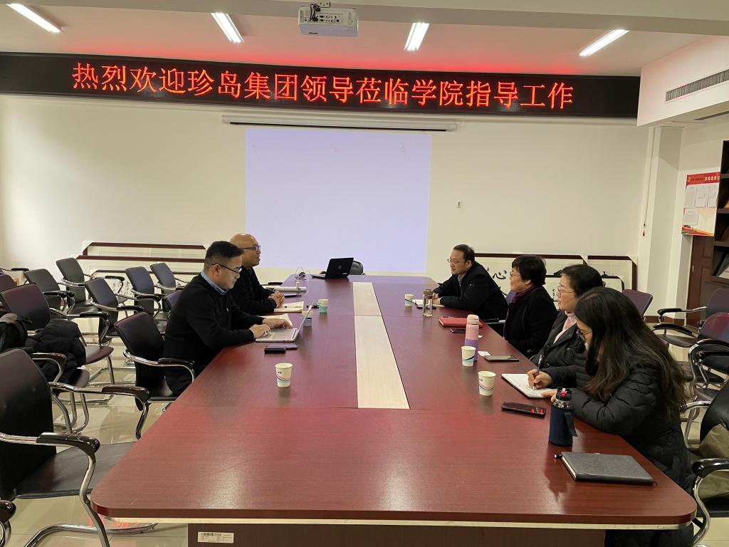 张蓬副总裁介绍了公司整体情况,随后重点介绍了公司的全球智能营销高品生产力育训融合服务平台,并期望与我院在应用型技能实训、社会化服务基地等方面展开合作,双方还就其他合作事宜进行了深入交流。