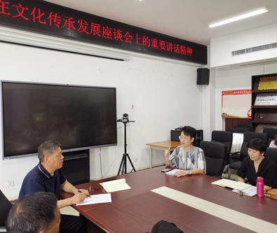 7月4日下午,商务与管理学院在SY5420召开专题学习会议,深入学习习近平总书记在文化传承发展座谈会上的重要讲话精神,全体教师参加学习,会议由党总支书记樊建科主持。