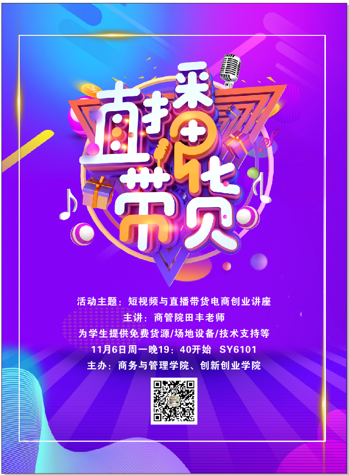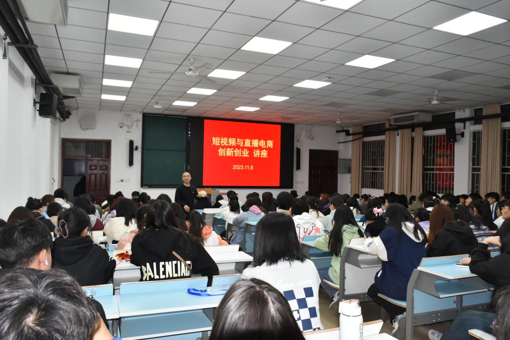 11月6日晚,我院网络营销与直播电商专业 田丰老师在6101教室举办了“短视频与直播电商创新创业讲座”,我院大一学生及校内其他部分专业的约200余学生参会。