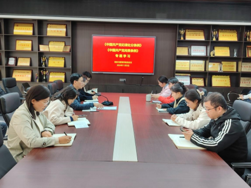 孙辉首先领学了《中国共产党纪律处分条例》《中国共产党问责条例》,他指出全体党员教师、干部要把学习贯彻《条例》作为重要任务,同学习贯彻党的二十届三中全会精神紧密结合,开展多种方式的学习,深刻认识《条例》的重要意义,准确把握内涵要义和实践要求,严格执行和维护党的纪律。