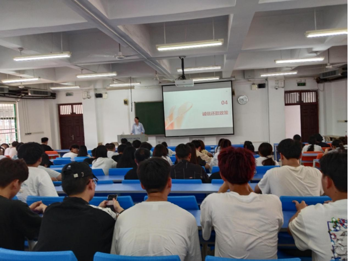 会议上,资助老师陈宜奇对高校国家助学贷款的相关政策进行解读,向同学们宣传了国家助学贷款对同学们的帮助和重要性。陈宜奇还宣讲了诚信还款的典型例子和没有按时还款最终个人失信,银行不予贷款等失败例子。