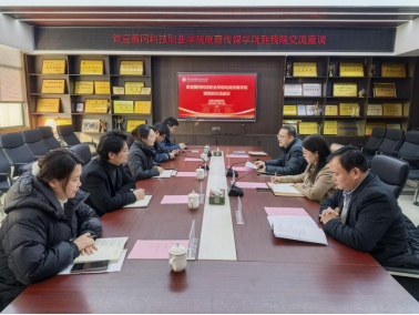 1215日,黄冈科技职业学院电商传媒学院院长陶尚帅一行三人莅临我院进行调研交流,双方主要围绕人才培养、产教融合、校企合作等议题展开深入探讨。我院院长吕梁、副院长尹友及相关部门负责人热情接待了来访嘉宾。