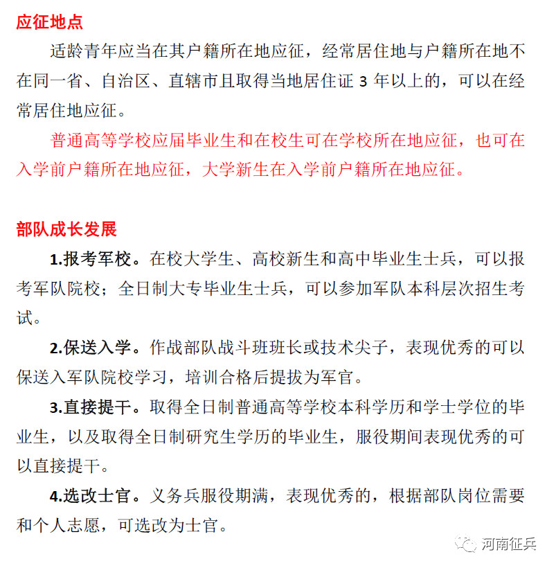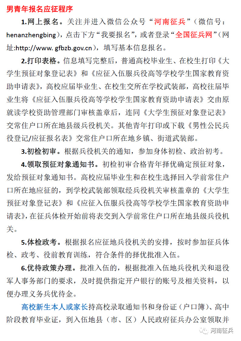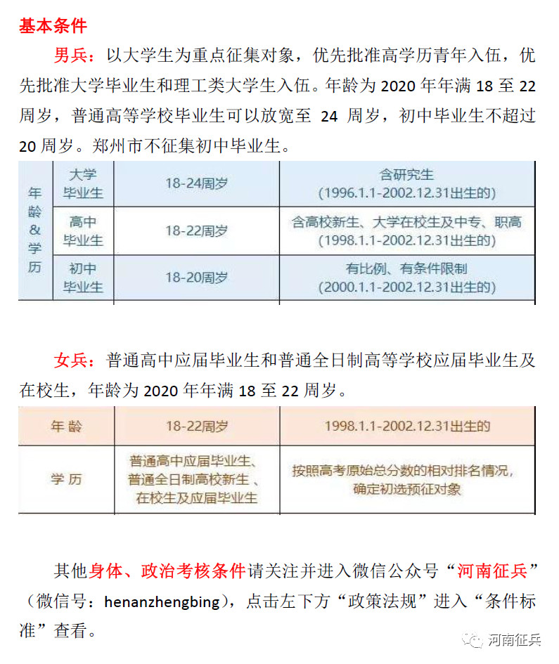 按:用青春热血铸就钢铁长城,用才华激情助推强军伟业。2020年征兵报名工作正在进行,有志青年们,准备好了吗?欢迎你们的加入!现将今年征兵政策公告如下: