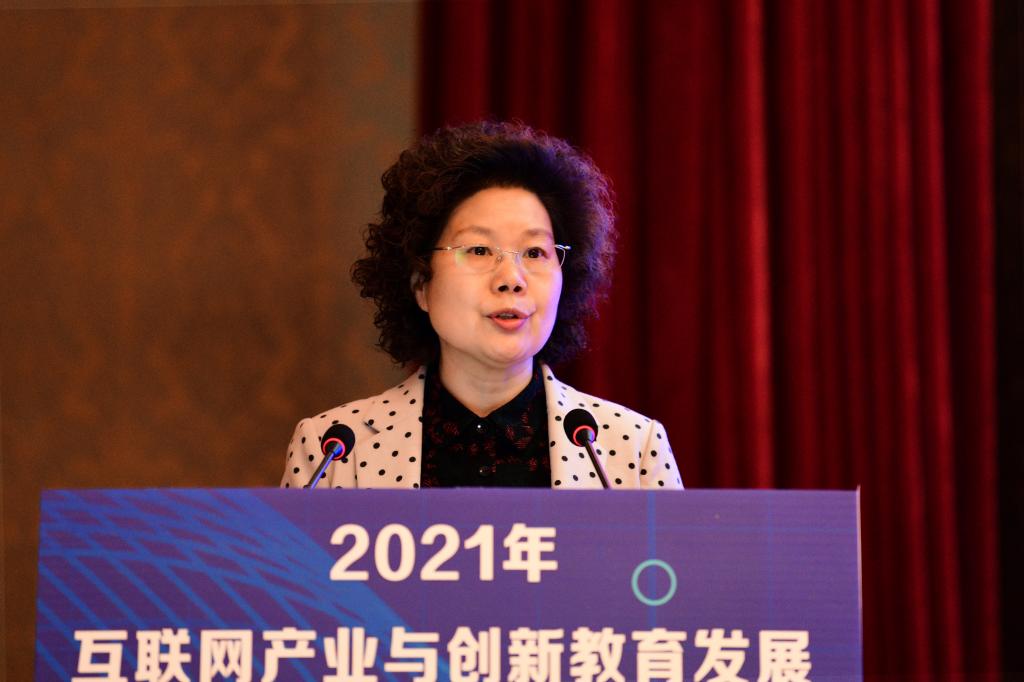 校党委书记周保平致欢迎词,向省内外院校和互联网业界知名企业的领导、教学一线的老师们致以热烈欢迎和衷心感谢,介绍了学校悠久的办学历史、鲜明的办学特色、骄人的办学成就和财经商贸大类专业发展成绩。周书记强调了学习贯彻习近平总书记在全国职业教育大会上的指示精神,她表示,此次高峰论坛在2021年全国职业教育大会召开不久举办,希望参加峰会的互联网产业企业与高职院校遵循习总书记指示,进一步深化产教融合、校企合作,深入推进育人方式、办学模式、管理体制、保障机制改革,稳步发展职业教育。校企双方能够站在国家职业教育发展的战略高度,共谋互联网产业与创新教育发展的金点子,共同为中国特色社会主义建设事业培养高素质技术技能人才、能工巧匠、大国工匠。
