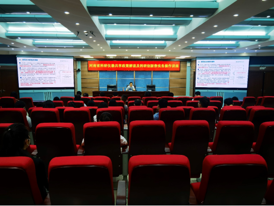刘朝科主任以《河南省科研仪器共享政策解读及科技创新券实务操作》为主题,首先介绍了国家出台重大科研基础设施和大型科研仪器向社会开放共享政策的背景,强调大型仪器设备开放共享是合理优化资源配置、充分发挥科学仪器设施效益、推进跨区域资源协同创新和提高企业科技创新能力的重要措施。然后详细解读了河南省根据国家政策要求制定的《河南省科研设施和仪器向社会开放共享绩效评价实施细则》和《河南省科技创新券实施细则》的出台背景、实施成效、激励与约束机制、创新券业务操作流程等。最后着重介绍了科技创新券支持对象、范围、标准与发放形式,接收科技创新券的管理单位类型,科技创新券申请、使用、接收与兑付过程中的有关注意事项,今后省科技厅等主管部门对科研设施和仪器的管理高校实施年度考核,并把共享开放水平和结果作为年度考核的重要内容之一。