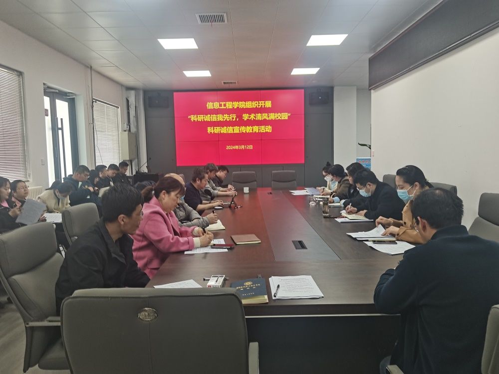 为进一步弘扬求真务实、严谨自律的学术精神,引导学院教师遵守学术规范、维护学术尊严、摒弃学术不端,努力成为优秀学术道德的践行者和健康学术风气的维护者,营造和谐创新的科研氛围,3月12日下午,信息工程学院在SY4426会议室集中开展科研诚信宣传教育活动,全体教职工参加,活动由副院长张校慧主持。
