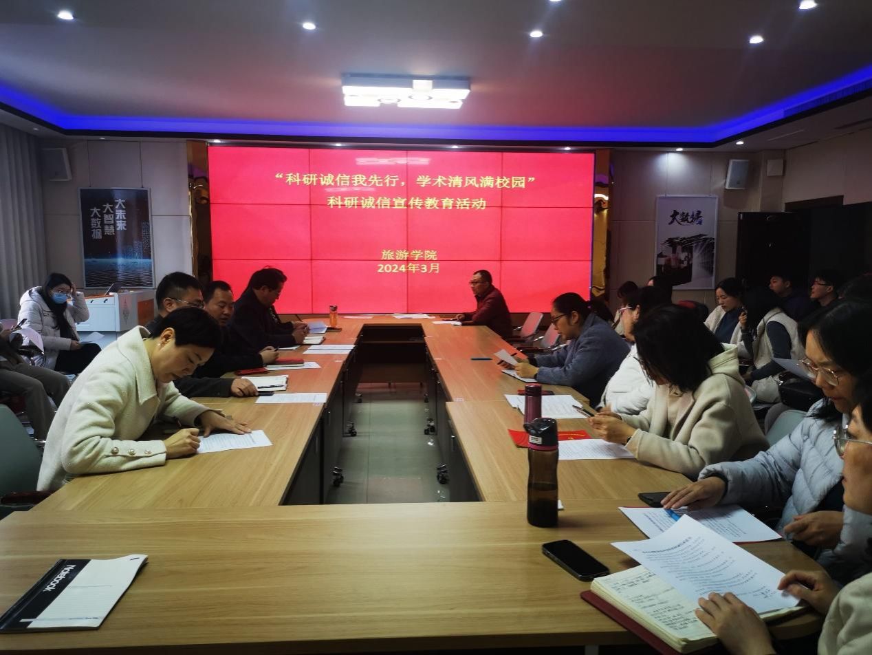 为弘扬求真务实、严谨自律的学术精神,引导广大教师遵守学术规范、维护学术尊严、摒弃学术不端,努力成为优秀学术道德的践行者和健康学术风气的维护者,营造和谐创新的校园科研氛围。根据学校科技处《关于开展“科研诚信我先行,学术清风满校园”科研诚信宣传教育活动的通知》的具体要求,我院于2024年3月12日召开“科研诚信我先行,学术清风满校园”科研诚信宣传教育专题学习活动。