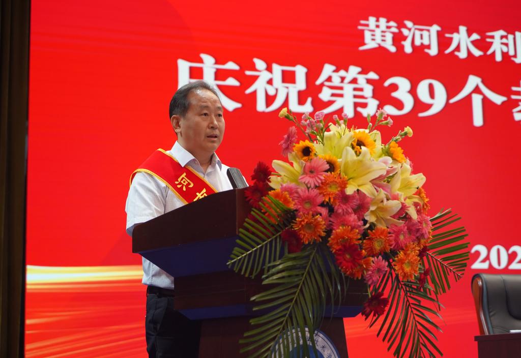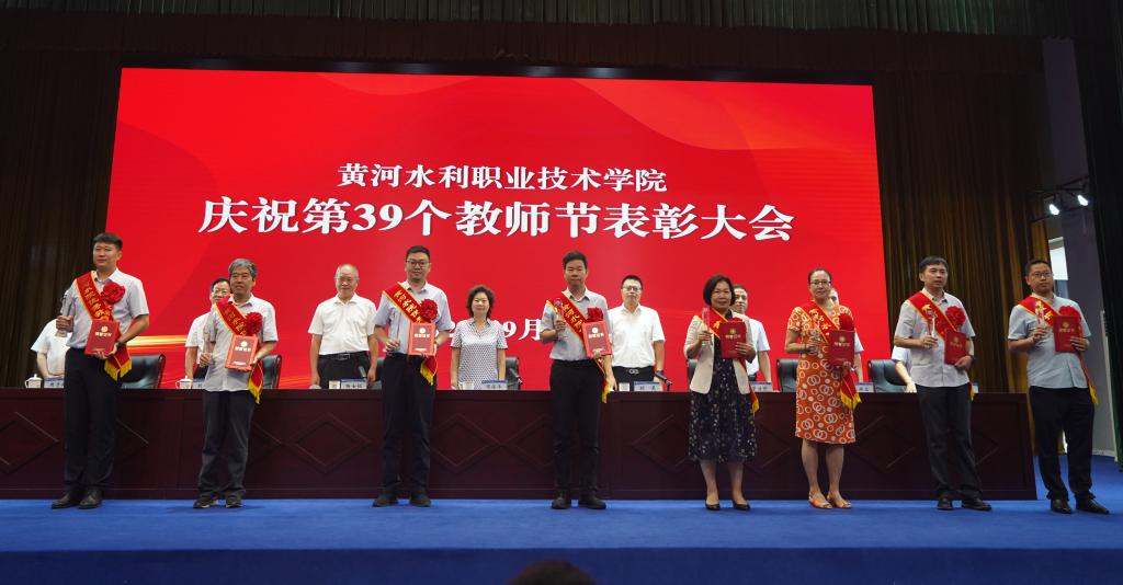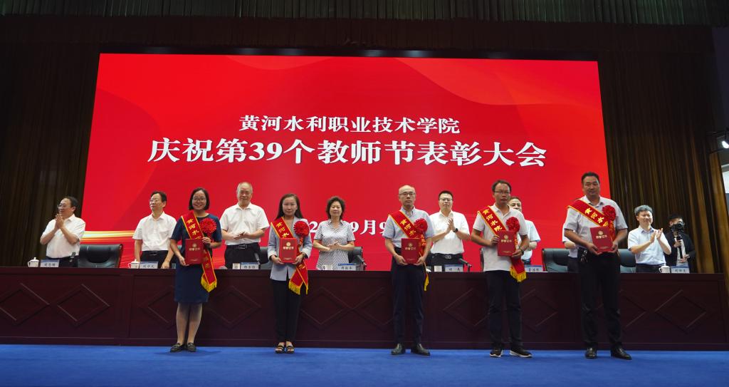 胡昊宣读了《关于表彰河南省教育系统先进集体和先进个人的决定》《关于表彰开封市教育系统先进集体和先进个人的决定》《中共黄河水利职业技术学院委员会关于表彰第三届教职工道德模范的决定》表彰文件。周志琦宣读了《关于表彰2023年度优秀教师和优秀教育工作者的决定》《关于表彰2023年从事教育教学工作满三十年教师的决定》表彰文件。学生代表向获奖教师代表献花,表达了学子对老师们的崇高敬意和诚挚祝福 。河南省优秀教师、环境工程学院博士姚新鼎,学校优秀教师代表李梅华,学生代表李雪分别进行了发言。