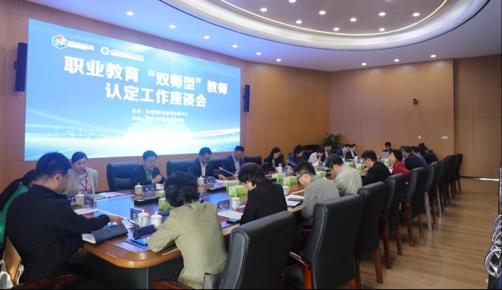 10月23日,由教育部职业教育发展中心主办的职业教育“双师型”教师认定工作座谈会在我校召开。教育部职业教育发展中心副主任黄辉、教师发展处处长孙琳,河南省教育厅职业教育与成人教育处二级调研员张家成,我校党委书记周保平,党委副书记、校长胡昊,副校长周志琦以及来自部分省级教育行政部门代表、有关教育科研机构专家及职业院校代表20余人参会。会议分阶段由胡昊、孙琳主持。