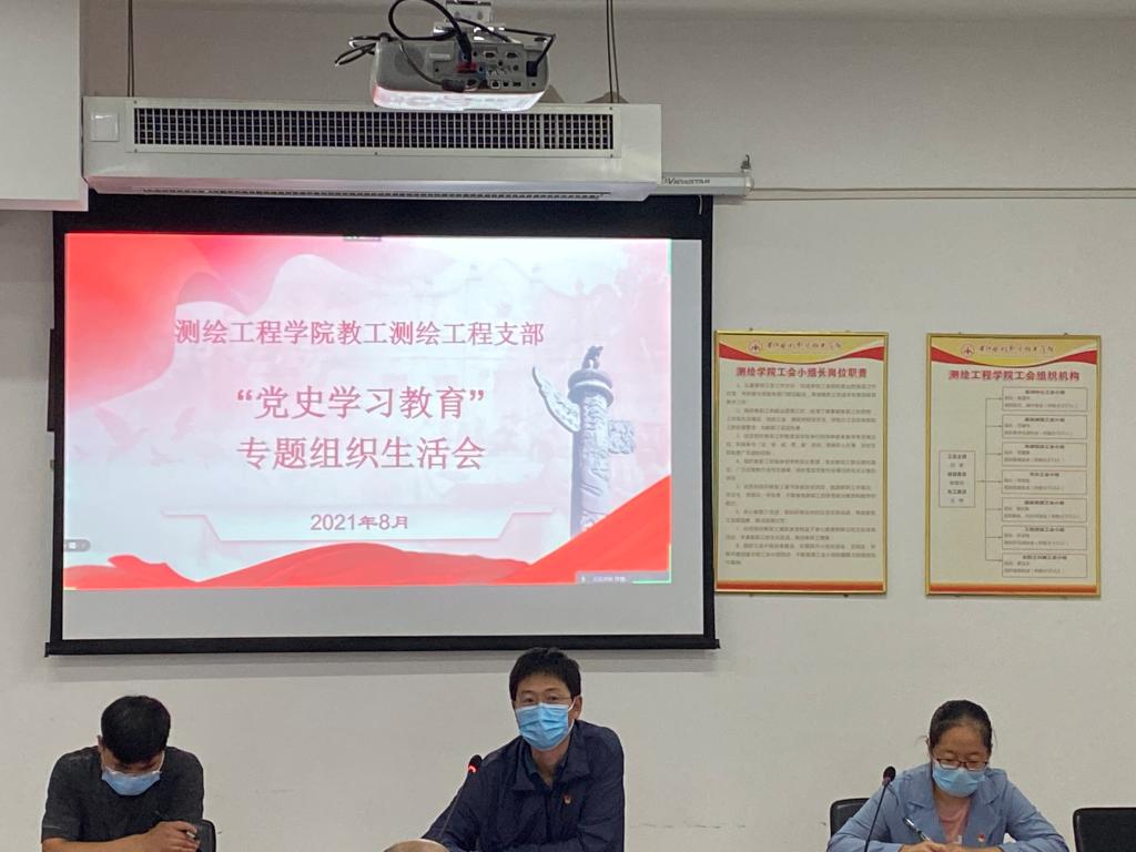 按照校党委的要求,根据教工测绘工程党支部党史学习教育安排,8月26日教工测绘工程党支部紧紧围绕“学党史、悟思想、办实事、开新局”这一主题组织召开了党史学习专题组织生活会,胡昊校长以普通党员身份、纪委副书记王忠伟列席参加了本次组织生活会。会议由支部书记朱曙光主持,支部全体党员共38人参加了本次会议。