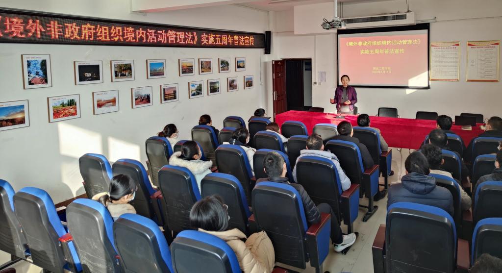 2022年1月15日上午,测绘工程学院组织全体教师在会议室5434开展了《境外非政府组织境内活动管理法》普法宣传活动。