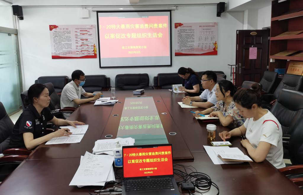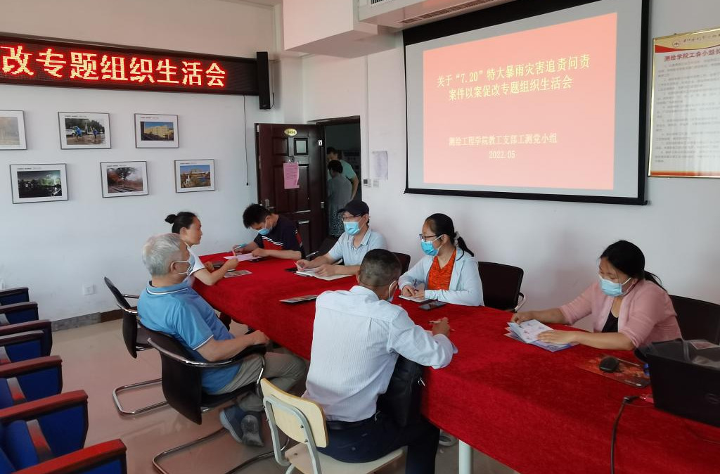 校党委关于郑州“7.20”特大暴雨灾害追责问责案件以案促改专题组织生活会的部署,5月24日下午,测绘工程学院教工支部召开了“7·20”以案促改专题组织生活会,会议由支部书记朱曙光主持。