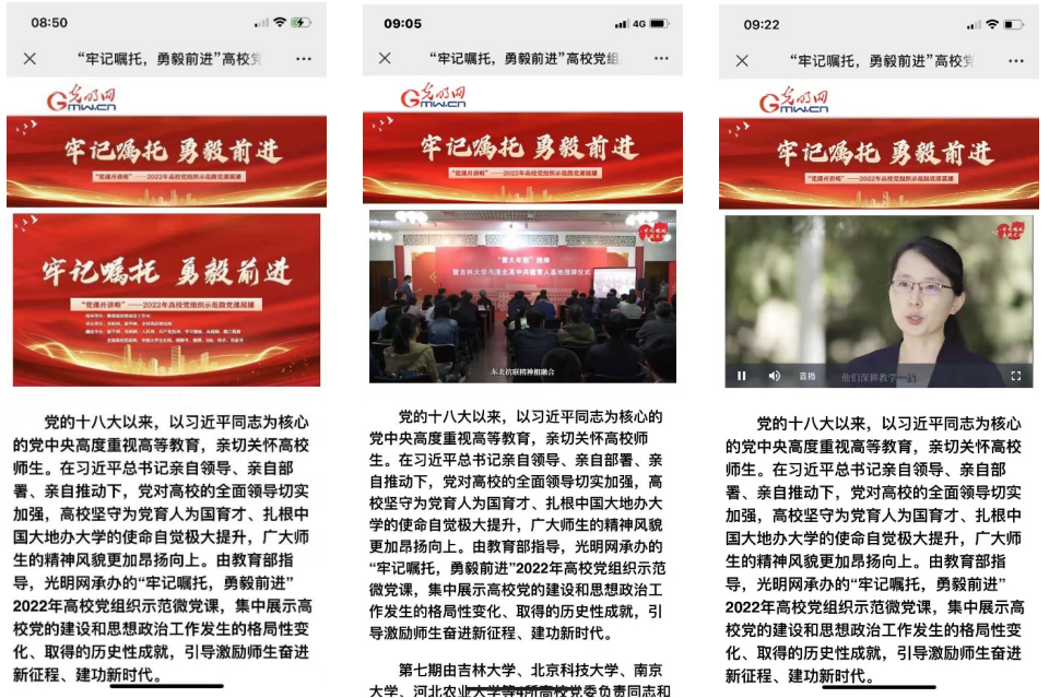第7讲由吉林大学、北京科技大学、南京大学、河北农业大学等4所高校党委负责同志和师生代表,围绕学习贯彻习近平总书记考察学校重要讲话和给学校师生的重要回信,以“学习弘扬黄大年同志高尚精神”为主题面向全国师生讲授了微党课,引导广大教师学习弘扬黄大年同志、李保国同志高尚精神,弘扬留学报国光荣传统,严谨治学、甘为人梯,争做大先生的生动实践。