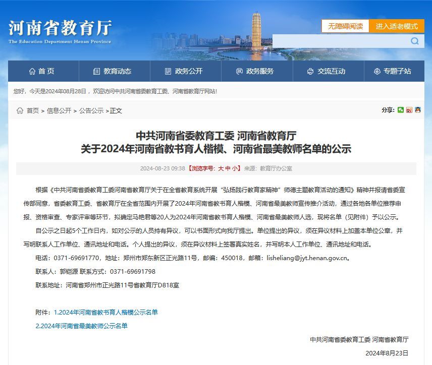 图1 2024年河南省教书育人楷模公示