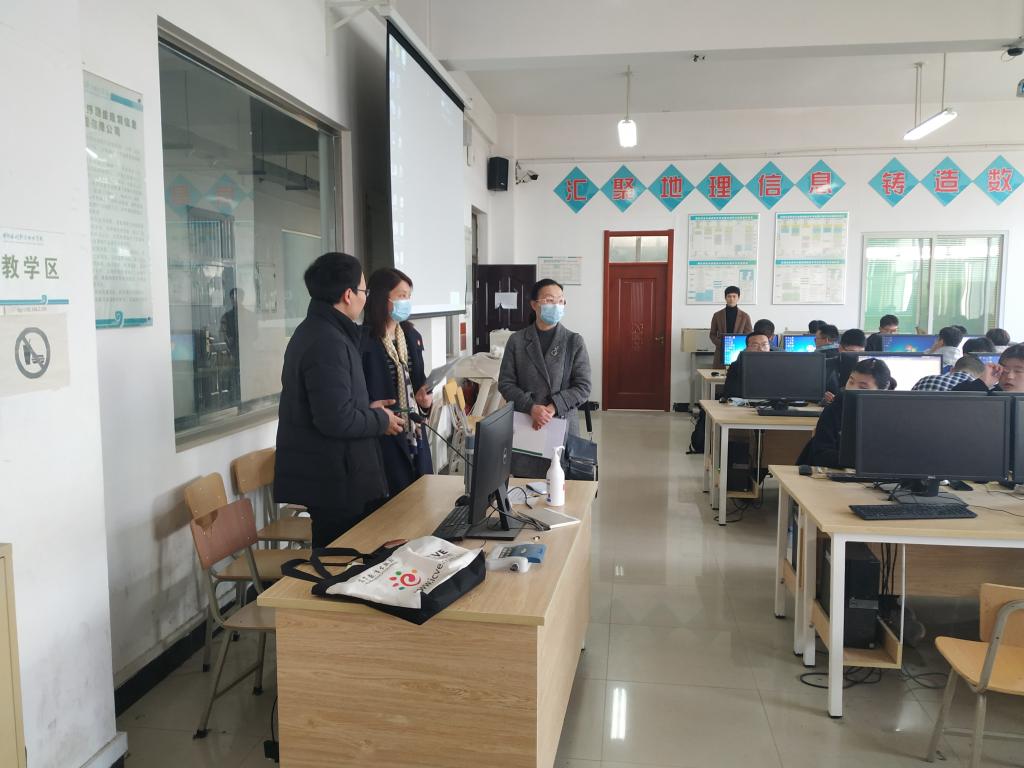 3月15日是本学期我校2019级、2020级专科生新学期开学第一天,为保障落实正常的教学秩序,焦爱萍副校长深入测绘工程学院全面了解检查教学工作的运行情况,学院由陈琳院长和纪勇书记及三办相关人员陪同深入到教室和实训场重点对疫情防控措施是否到位、教师资料准备、课堂教学、学生到课以及教学资源保障与教学环境等方面进行了全面检查,稍后焦校长及学院领导随堂听取了教师的上课情况。