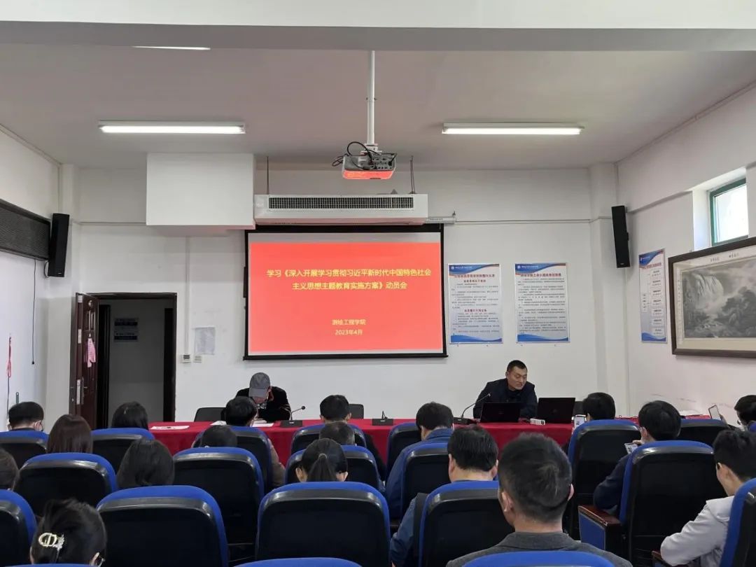 为了全面贯彻党的二十大精神,根据黄院党〔2023〕23 号文件《深入开展学习贯彻习近平新时代中国特色社会主义思想主题教育实施方案》精神的要求,测绘工程学院党总支在4月25日在全院范围内开展学习贯彻习近平新时代中国特色社会主义思想主题教育动员部署会议,学院全体教职工参加会议,会议由党总支副书记彭战松主持。