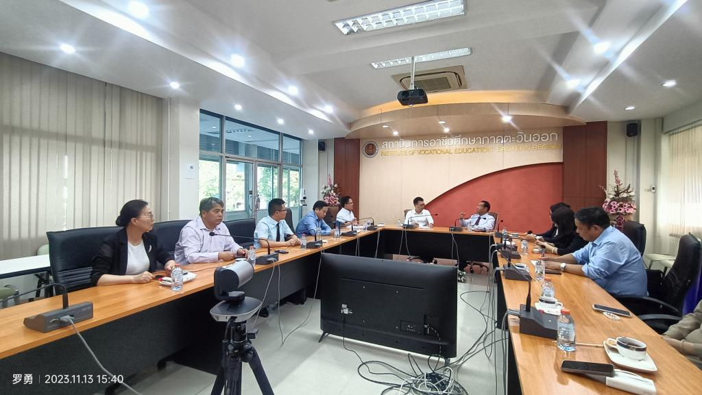 11月13日下午,胡昊一行赴泰国东部职业教育委员会访问,泰国东部职业教育委员会主席宋猜·谭荣苏、副主席纳荣·卡塞菲巴尔及相关人员出席会谈。