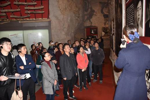 随后大家参观了红旗渠咽喉工程——青年洞,实地见证了红旗渠修建过程的艰辛;行走在不足两米宽的渠墙上,向前看不见头,向后看不尾,抬头是陡立的峭壁,俯首是数丈高的悬崖。想到当年的自然环境极其恶劣,不仅缺少机械设备和技术水平,还有三年的自然灾害带来的巨大困难,林州人民在如此艰苦的条件下修出这样的“人工天河”,实属奇迹!那300多名青年组成的突击队,是我们学习的典范。