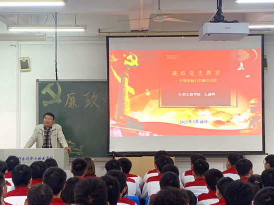 为深入学习贯彻习近平新时代中国特色社会主义思想,深化党史学习教育,加强反腐倡廉教育和廉政文化建设,进一步增强党校学员廉洁自律意识,2021年5月18日,水利工程学院党总支在JX2402组织开展廉政党史教育专题党课。此次党课由水利工程学院党总支纪检委员、全国“双带头人”教师党支部书记工作室支部书记王建伟教授讲授,水利工程学院2021年上半年发展对象和第48期积极分子全体成员共200余名同学参加此次党课,党课由水利工程学院党总支办公室主任李建主持。