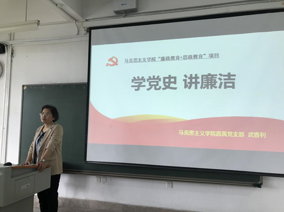5月份,马克思主义学院直属党支部纪检委员武香利依托思政课堂,为2020级学生开展了《学党史 讲廉洁》的党史教育宣讲活动。武香利用案例教学的方法,用5个不同时期的典型案例说明了从中国共产党成立以来“反腐永远在路上”,最后用互动的方式,让同学们讨论了为什么在大学时期要进行廉政党史学习。最后,得出结论:大学阶段要筑牢“不想腐”的思想根基,扣好人生第一粒扣子,反对腐败从我做起。
