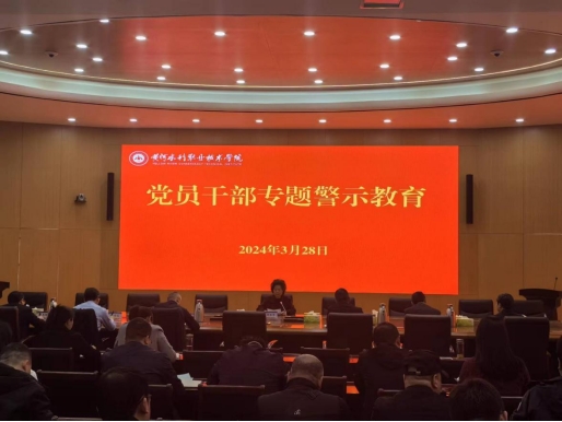3月28日下午,我校在行政楼第五会议室召开党员干部专题警示教育会议,集中观看警示教育片。学校领导班子成员出席会议,全体中层正职领导干部参会。会议由校纪委书记刘许亮主持。