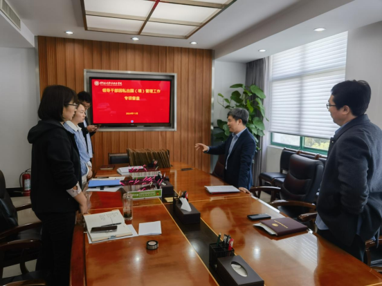 为进一步加强领导干部管理监督,推动领导干部个人事项报告及因私出国(境)管理工作规范化、制度化建设,11月1日上午,校纪委书记刘许亮带领纪委(监察处)工作人员到党委组织部专项督查领导干部个人事项报告和因私出国(境)管理工作,党委组织部相关负责人陪同检查。