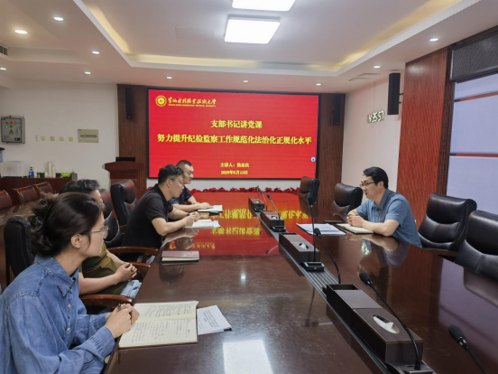 2025年5月13日下午,校纪委支部书记焦东良在行政楼第一会议室以“努力提升纪检监察工作规范化法治化正规化水平”为主题讲授专题党课,支部全体党员参加学习。