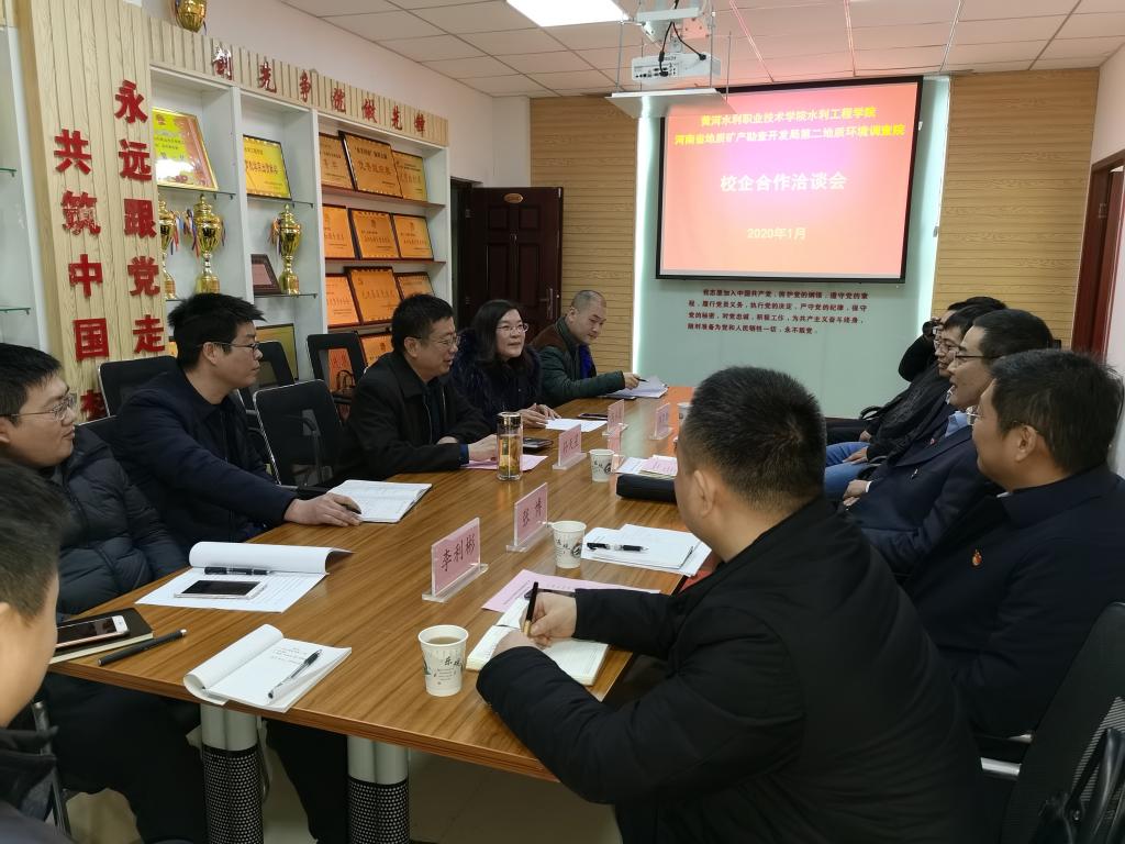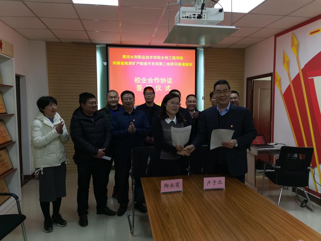 1月8日上午,我院与河南省地矿局第二地质环境院在实训楼3506举行黄河流域生态保护领域校企合作洽谈及签约仪式。我院党总支书记孙天星,院长陶永霞,水文地质教研室主任李忠,水文与水资源教研室主任贾洪涛,水土保持教研室主任侯礼婷及校企合作办公室主任陶攀,省地矿局第二地质环境院书记卢予北,副院长、总工程师邓晓颖,副院长张博等出席洽谈签约仪式,会议由孙天星书记主持。