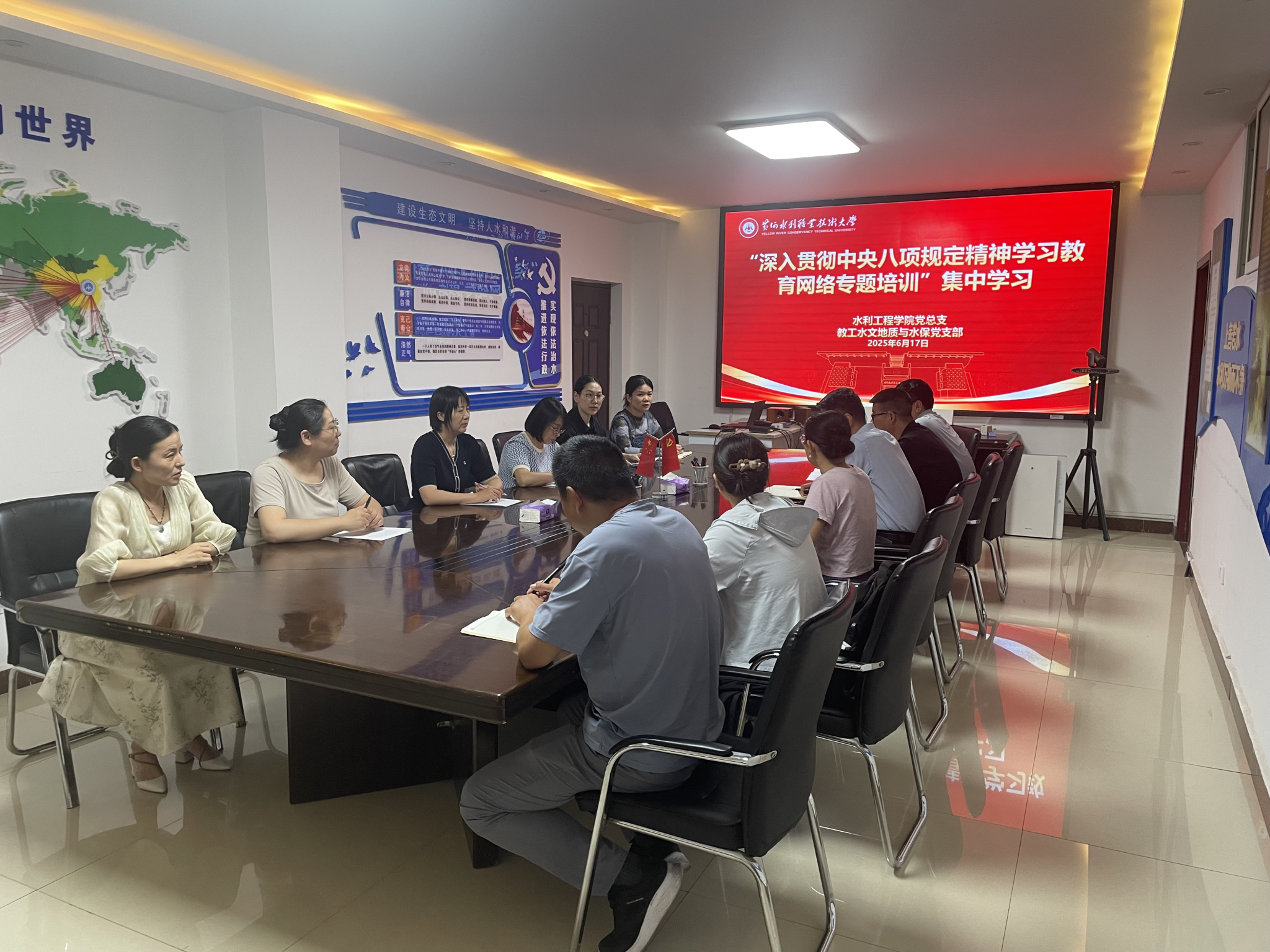 教工水文地质与水保党支部召开“深入贯彻中央八项规定精神”学习教育网络专题培训集中学习活动