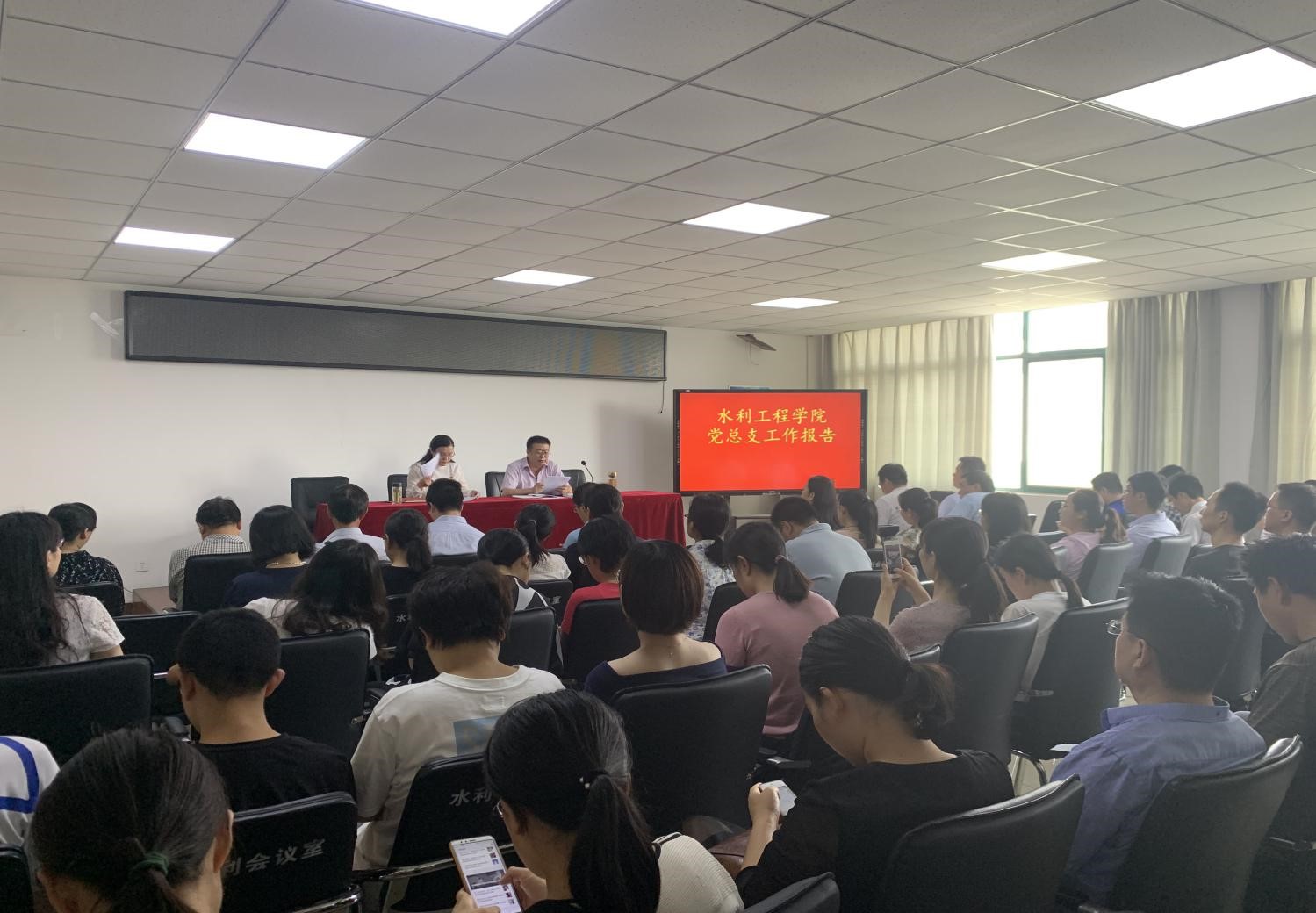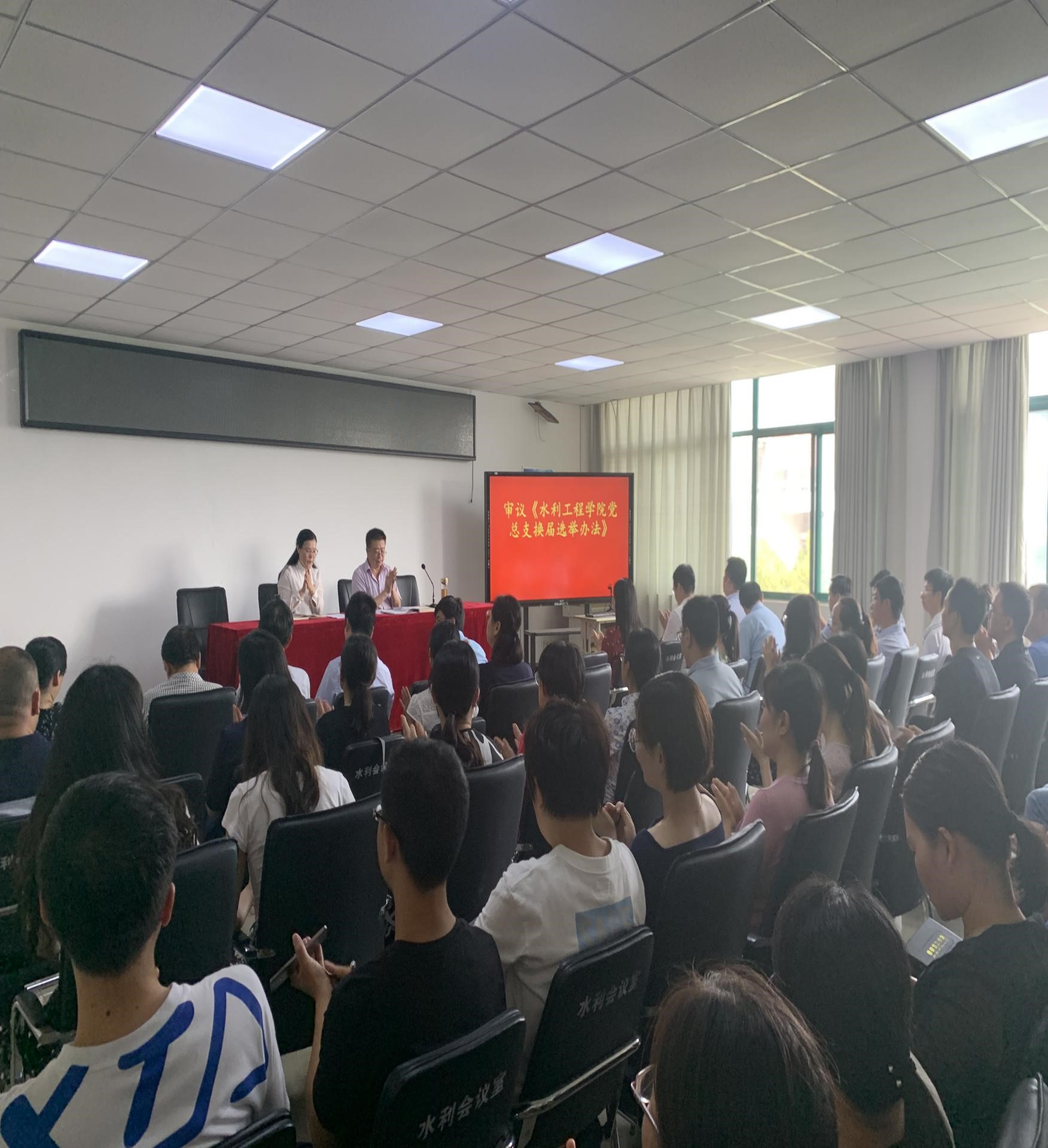 根据学校工作安排,水利工程学院党总支于2019年6月25日下午3:00在SY5306召开水利工程学院党总支换届选举大会,水利工程学院党总支全体党员参加了本次大会,会议由水利工程学院院长陶永霞主持。