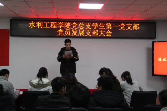 最终,会议一致同意并通过了李笑笑等14名拟发展的同学加入中国共产党,成为预备党员。最后,水利工程学院学生第一党支部书记许晓瑞总结发言,许晓瑞老师讲述了党员所要履行的责任及义务,身为党员要不求索取的为大家做实事,在班级中树立良好榜样,在生活中树立良好作风。时刻保持党员的先进性,处处起到先锋模范作用,并预祝各位同学早日加入党组织。