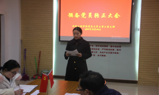 2018年12月5日下午13:00,水利工程学院党总支学生第三党支部在SY5306召开预备党员转正大会。参加本次会议的有:学生第三党支部书记李建、学生党支部委员以及第三党支部全体学生党员。会议由学生第三党支部书记李建主持。