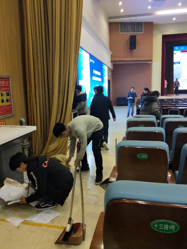 支部的党员同志在党支部书记李建同志的组织下,对活动中心的卫生进行了打扫,并布置会场。活动中,同志们手拿扫把、拖把等劳动工具,对活动中心内的垃圾等进行了彻底清理,尽管天气很冷,但大家热情似火,干劲十足。大家不怕脏、不怕累,弯腰用手捡。在同志们的辛勤劳动下活动中心被清理得干干净净。