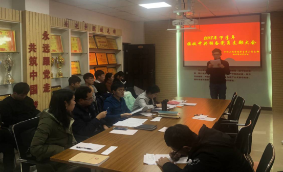 12月12日,水利工程学院学生第三党支部于SY5306召开“2018年下半年接受中共预备党员支部大会”。会议讨论表决了席茉寒、黄振栋等6名同志转预备党员事宜,会议由支部书记李建主持,全体党员、在校预备党员和入党积极分子参加会议。