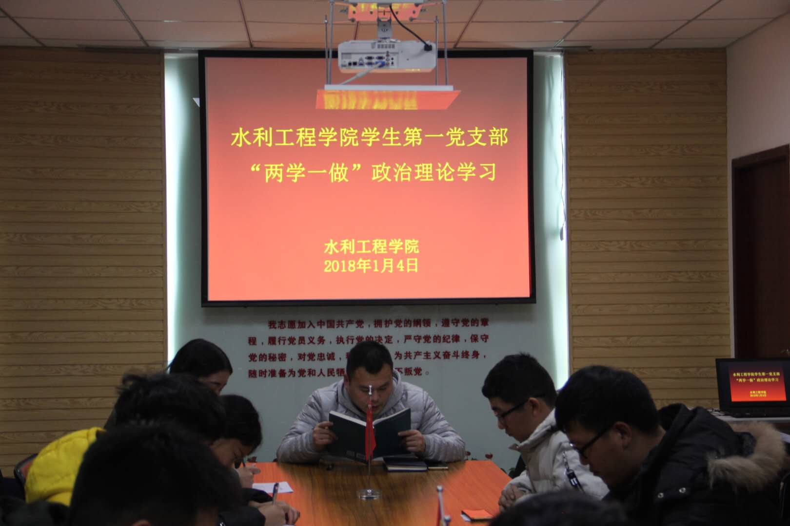 为建全党的组织生活,增强党员教育管理,加强基层党组织建设。2018年1月4日下午14:30-16:00,水利工程学院学生第一党支部在SY5306进行学习“三会一课”案例选,参加学习的有水利工程学院学生第一党支部书记万勋,学习第一党支部党员及学院第42期部分入党积极分子。