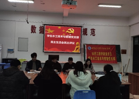 为深入贯彻落实校党委《关于召开主题教育专题组织生活会和开展民主评议党员的通知》的相关文件精神,进一步加强党支部建设,对支部党员严格要求,12月2日下午,水利工程学院学生水工技术与管理党支部在3号实训楼3204召开民主生活会和党员民主评议会,全体党员参加,会议由党支部书记许晓瑞主持。