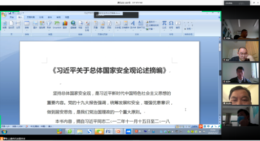 2020年05月12日下午4:00,水利工程学院教工水工技术与管理党支部全体党员通过腾讯会议直播的形式在线学习形式召开了学习《习近平关于总体国家安全观论述摘编》活动,活动由教工水工技术与管理党支部书记王建伟主持,支部全体党员参与了本次会议。