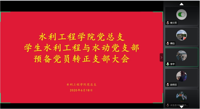 6月18日,水利工程学院学生水利工程与水动党支部召开预备党员转正大会。会议由支部书记张旭主持,学生党支部全体党员参加了会议。