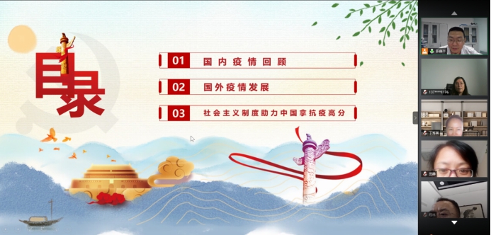 职保平同志系统梳理回顾国内疫情防控工作,以精彩的讲解、详实的数据、生动的图片再现了以习近平同志为核心的党中央团结带领全国各族人民,科学防治、精准施策,坚决打赢疫情防控的人民战争、总体战、阻击战的坚定信心和全面历程,重申共产党人始终坚持把人民群众生命安全和身体健康放在第一位,把初心落在行动上、把使命担在肩膀上,勇当先锋,敢打头阵,用行动展现共产党人政治本色。并通过对比部分国家错失最佳防疫窗口期的发展态势,详细阐述了我国在党的集中统一领导的制度优势、整体利益置于首位的制度优势、坚持人民主体地位的制度优势、依法治国的制度优势。