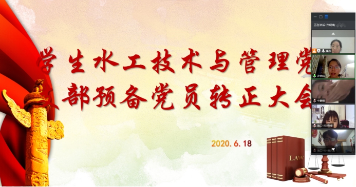 6月18日,水利工程学院学生水工技术与管理党支部以腾讯会议的形式召开预备党员转正大会。会议由支部书记许晓瑞主持,学生党支部全体党员参加了会议。