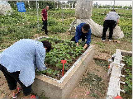 2020年7月17日下午,教工水文地质与水保党支部书记冯峰、副书记贾洪涛、张芳博士、刘翠老师,学生水文地质与水保党支部委员田桂桂老师,前往位于开封市兴隆乡的惠北科学实验站,与河南省豫东水利工程管理局副局长李世月、总工冯跃华、惠北科学实验站全体工作人员,共同开展河南省水利厅科技攻关项目的引黄灌区大豆节水灌溉实验的生长监测工作。