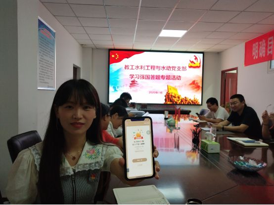 2020年7月17日,教工水利工程与水动党支部在5号实训楼312室集中开展“学习强国答题”专题活动,支部8名同志现场参加。