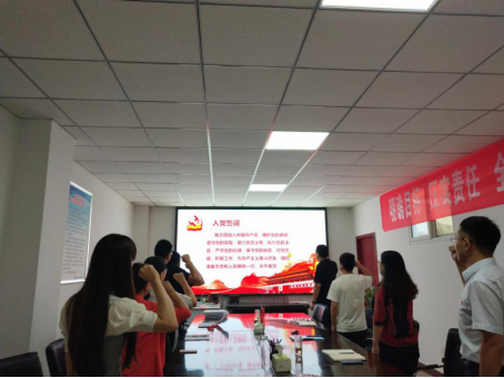 之后,职保平书记作为领誓人,带领支部全体党员一起高举右手,再次庄严宣誓。铿锵恢宏的誓词,强烈震撼着在场的每一位党员,回顾我们入党时的庄严承诺,时刻提醒着自己所肩负的神圣使命和责任,不断强化对我党的忠诚及对共产主义事业的不懈追求。