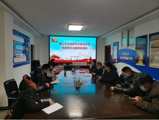 2021年12月28日,教工水文地质与水保党支部召开党史学习主题党日活动。会议由教工水文地质与水保党支部书记冯峰主持,支部党员全体参加会议。