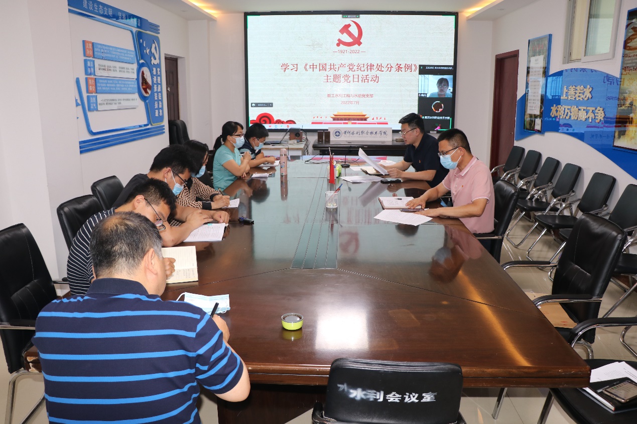 2022年7月23日下午,水利工程学院党总支教工水利工程与水动支部在5号实训楼5312会议室召开以案促改组织生活会,支部全体党员以线下线上方式出席了会议,会议由支部书记职保平同志主持。