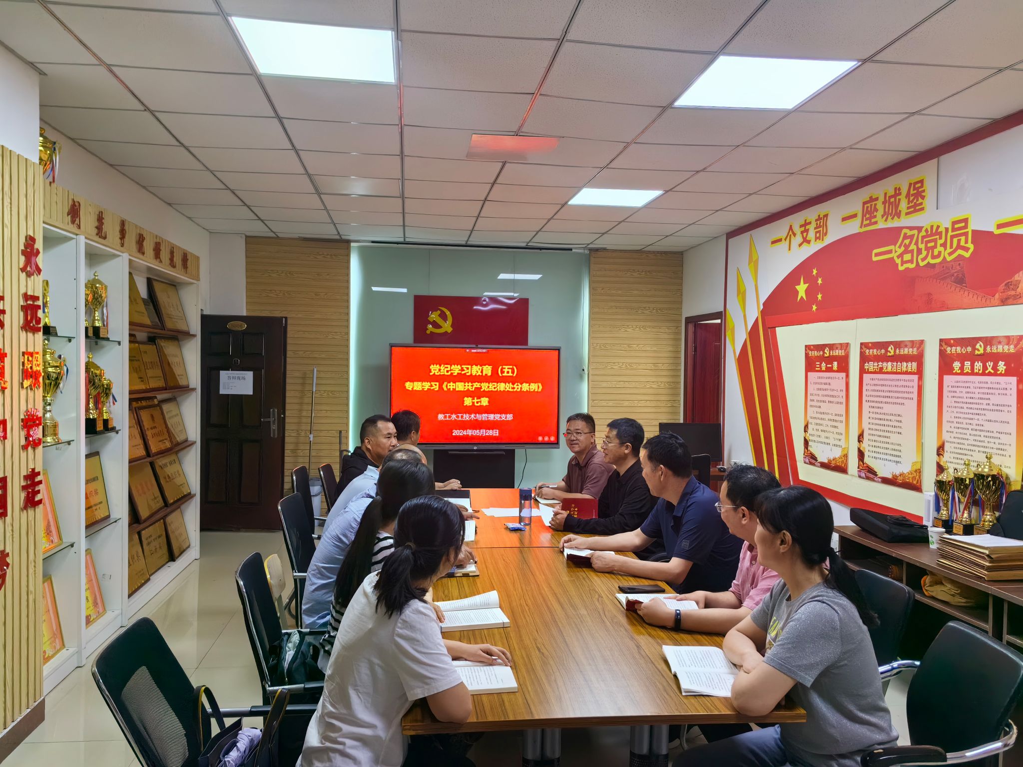 为深入开展党纪学习教育,帮助支部党员进一步做到学纪、知纪、明纪、守纪,5月28日下午,教工水工技术与管理党支部在党员活动室(实训楼SY5306)组织开展第五次党纪学习教育,本次学习的主要内容是《中国共产党纪律处分条例》第七章,学习活动由支部副书记吴伟主持。