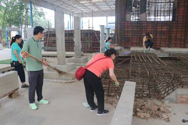 活动开展过程中,支部全体党员同志发扬不惧酷热、不怕辛苦的精神,认真清理地上的果皮、纸屑、烟头、塑料瓶、食品包装袋等杂物。在钢筋笼模型等难以清扫的部位,党员们就用手捡起垃圾,逐一清理,一个死角都不放过。虽然有蚊虫不断叮咬,但全体党员同志始终热情不减、认真清扫,经过两个小时的努力,实训场馆焕然一新。