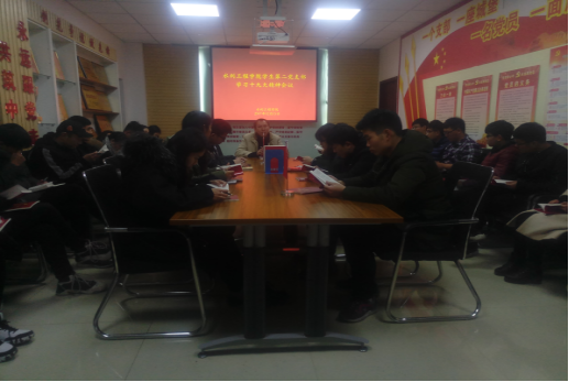 12月15日,水利工程学院学生二支部在水利工程学院党员活动室开展学习十九大精神会议,参加会议得有学生一支部书记陶攀和副书记李建及学生一支部全体学生党员,会议由学生一支部书记陶攀主持。