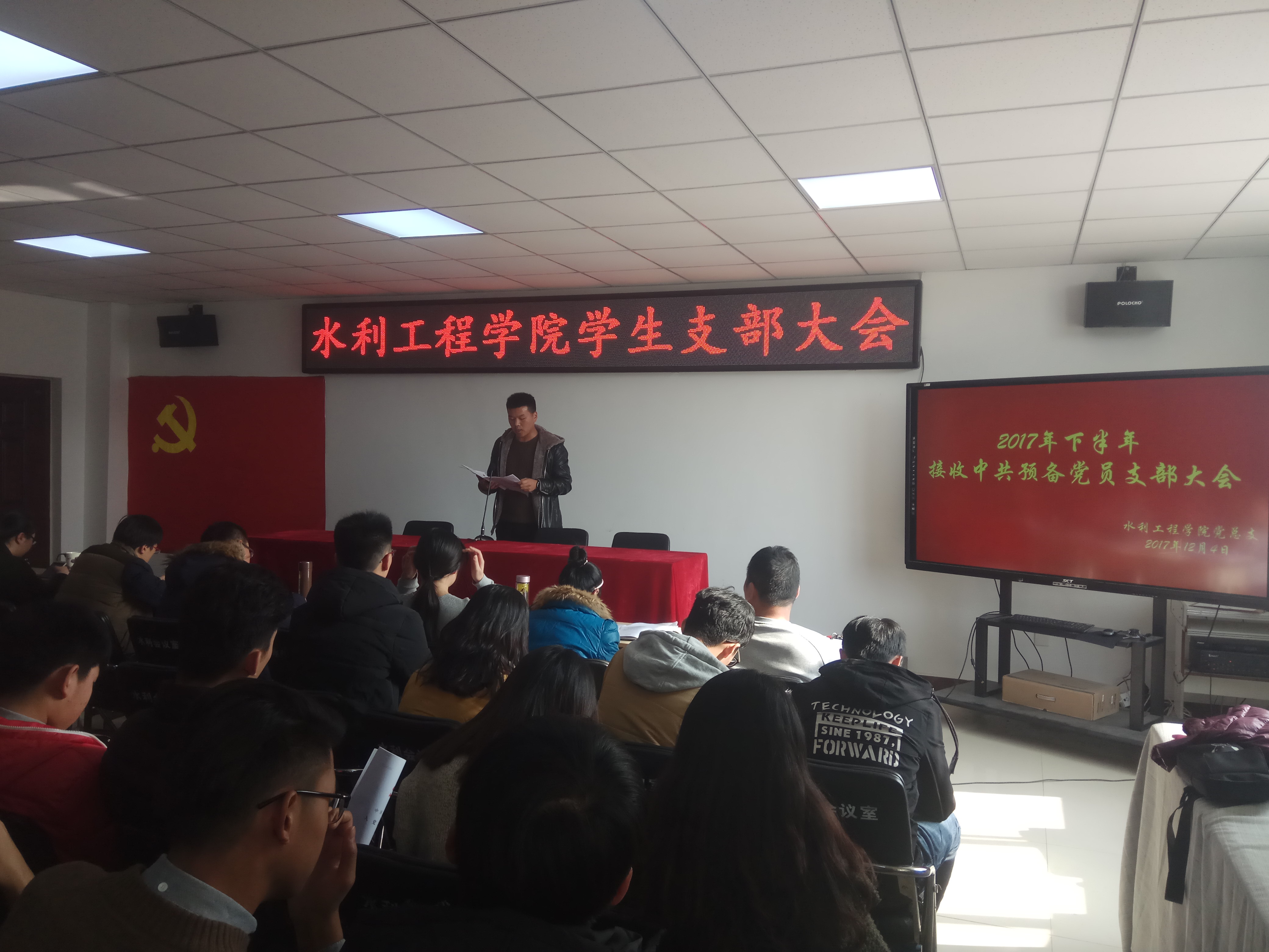 2017年12月4日上午10:00,水利工程学院学生党支部支部大会在SY5310顺利召开。水利工程学院党总支书记叶建海、学生支部教师党员参加本次大会,会议由水利工程学院学生第一支部书记万勋主持。